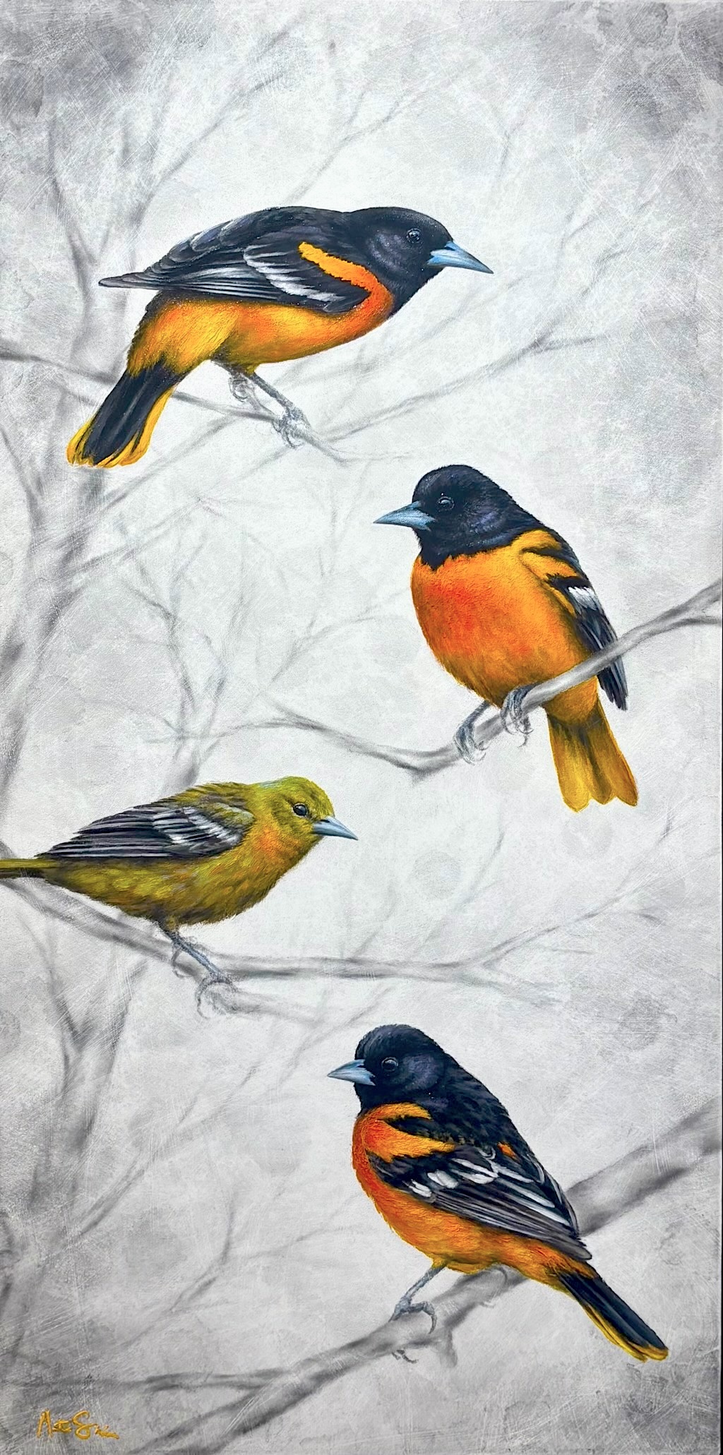 - Satin Acrylic Gel: brushed on leaving a gentle brush stroke texture.